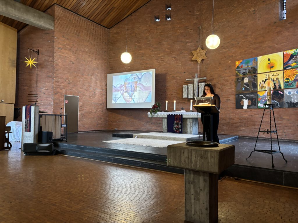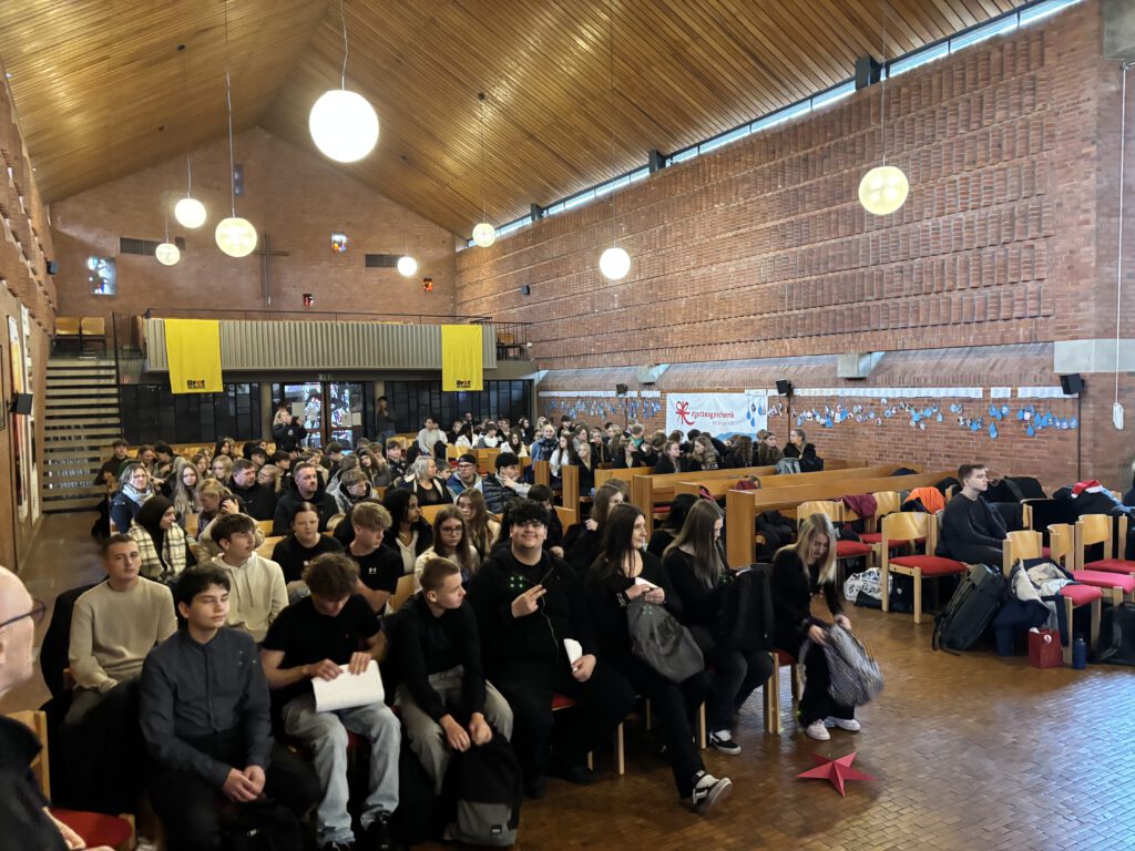 Die Gestaltung übernahmen die Schülerinnen und Schüler Elena Pancke-Mammen, Lucy Arnold, Jaqueline Le, Emily Küpper, Jana Eilerts, Celina Geiken, Tilmar Paulat, Elyas Al Haddad, Max Husanow, Mark Zdor, Arne Homeyer und Andrada Suciu, die unter der Leitung von Herrn Bikker Texte, Gedanken und kleine Beiträge präsentierten. Dabei wurde schnell klar: Die Weihnachtsbotschaft ist auch heute noch aktuell und kann Mut und Hoffnung schenken.